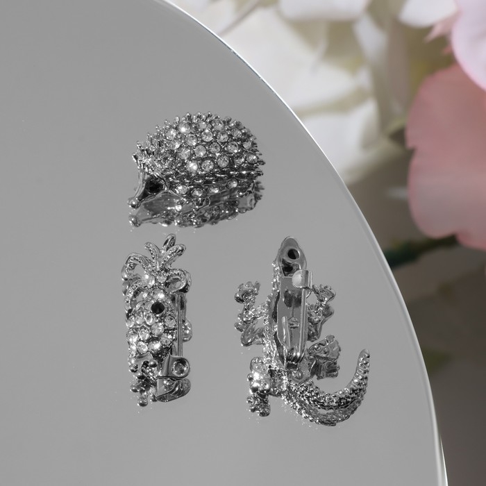 Брошь «Ассорти» зоопарк, цвет белый в серебре (неделимая фасовка 12 шт., цена за шт.)