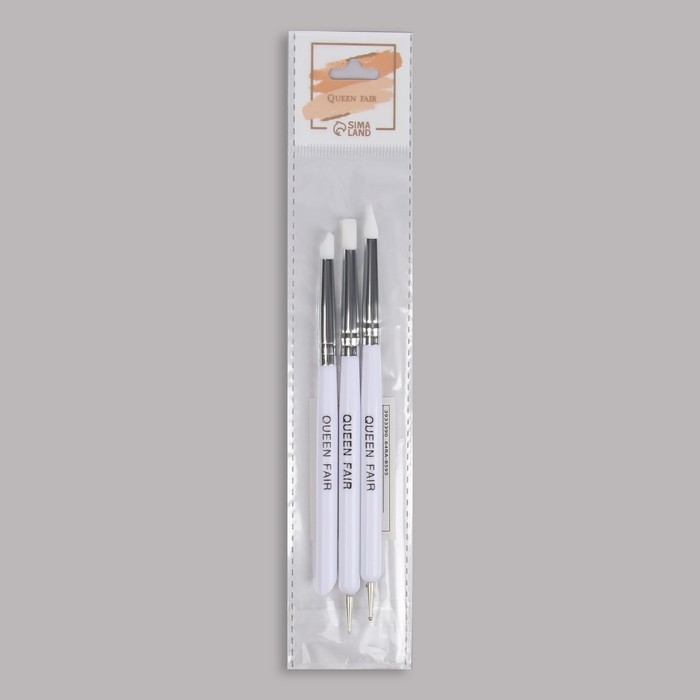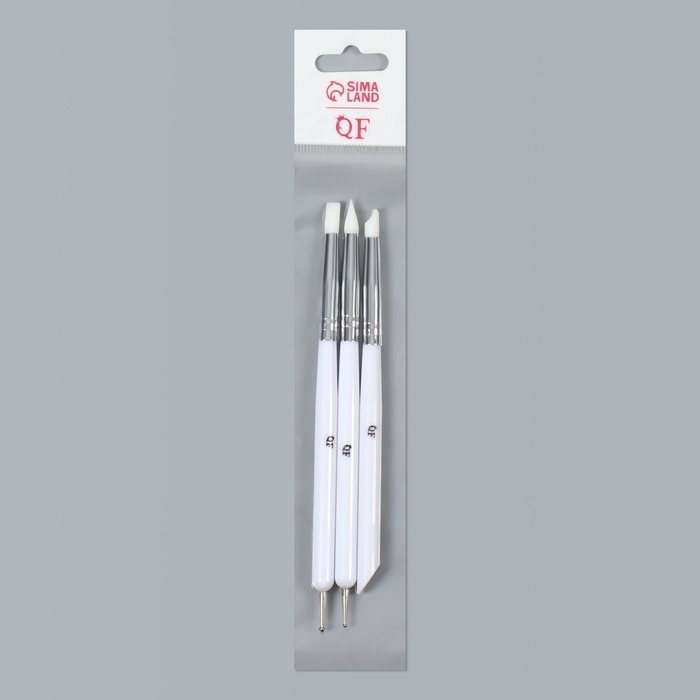 Набор для наращивания и дизайна ногтей: силиконовая кисть - дотс 2 шт, силиконовая кисть - пушер, цвет белый