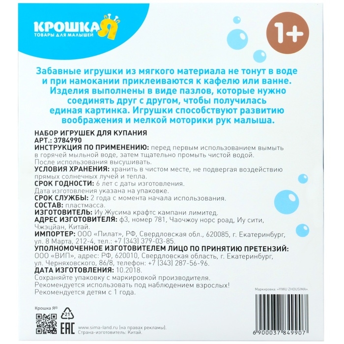 Мягкий пазл для малышей «Поменяй местами», 9 деталей, виды МИКС, Крошка Я