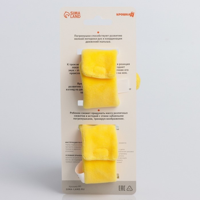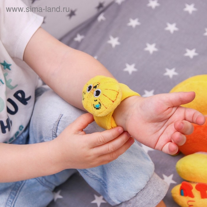 Развивающая игрушка выполнена в виде браслетика на липучке. В комплект входят две штуки. Их можно надеть малышу на ручки или ножки. Звуковые элементы будут греметь, когда непоседа сменит положение тела.