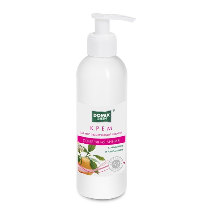 Крем для ног Domix размягчающий мозоли с лимоном, ланолином и наносеребром, 200 мл