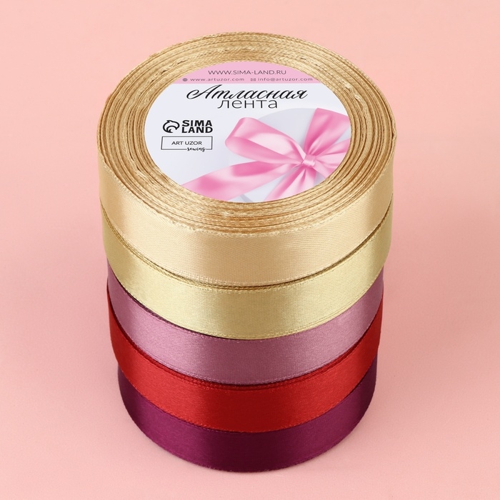 Атласная лента гладкая и приятная на ощупь. Используйте её для отделки изделий, украшения подарков, в свадебном оформлении, а также в скрапбукинге и канзаши.
