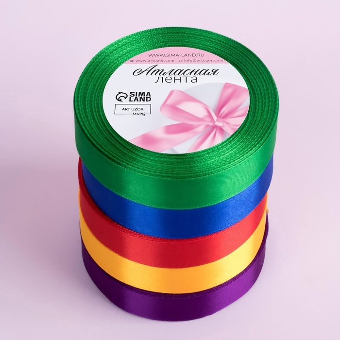 Набор атласных лент «Радуга», 5 шт, размер 1 ленты: 20 мм × 23 ± 1 м