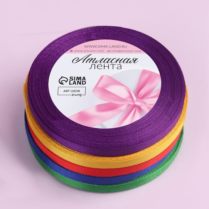 Набор атласных лент «Радуга», 5 шт, размер 1 ленты: 6 мм × 23 ± 1 м