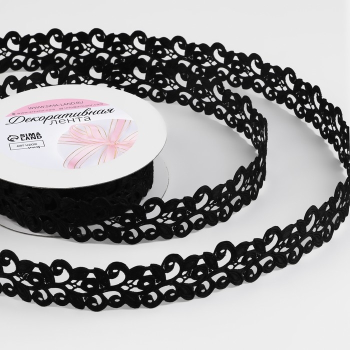 Лента фигурная «Вьюнчик», 25 мм, 9 ± 0,5 м, цвет чёрный
