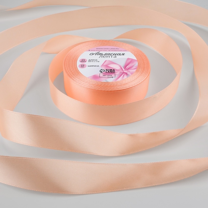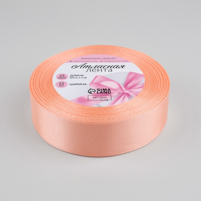 Лента атласная, 25 мм × 23 ± 1 м, цвет персиковый №124