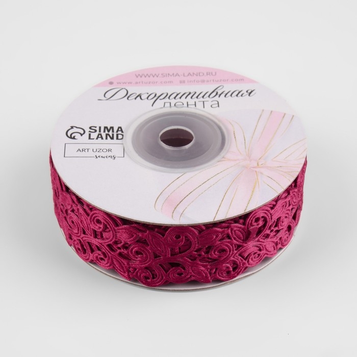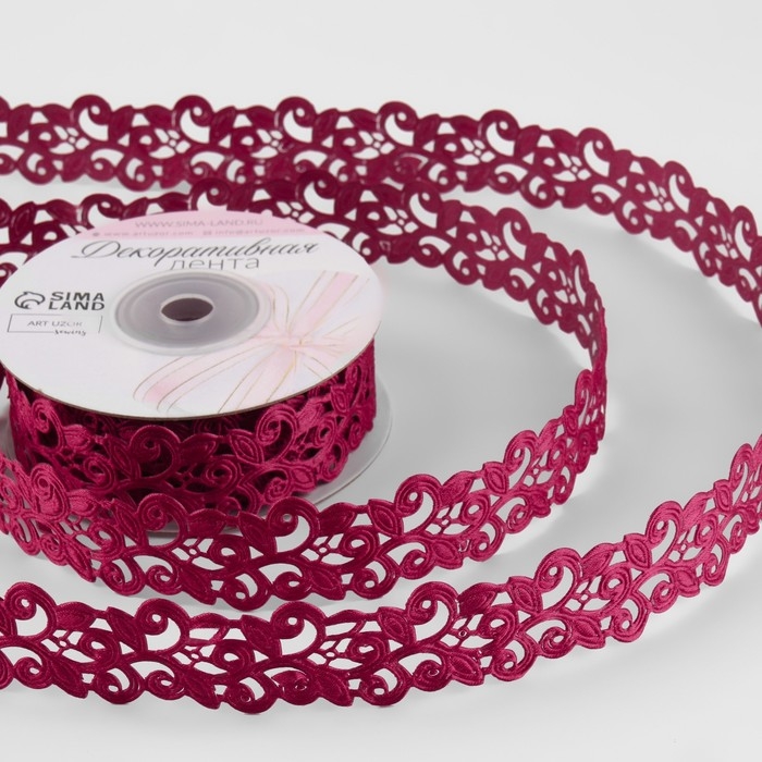 Лента фигурная «Вьюнчик», 25 мм, 9 ± 0,5 м, цвет вишнёвый
