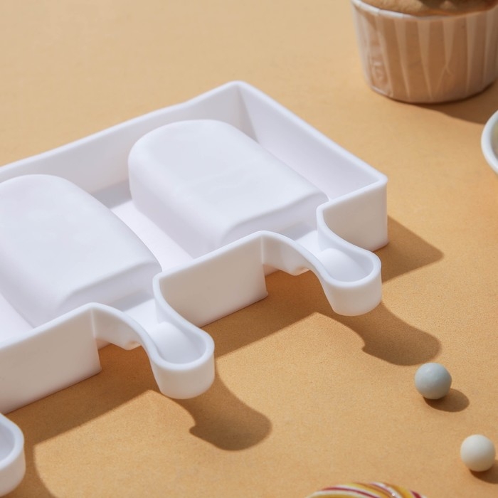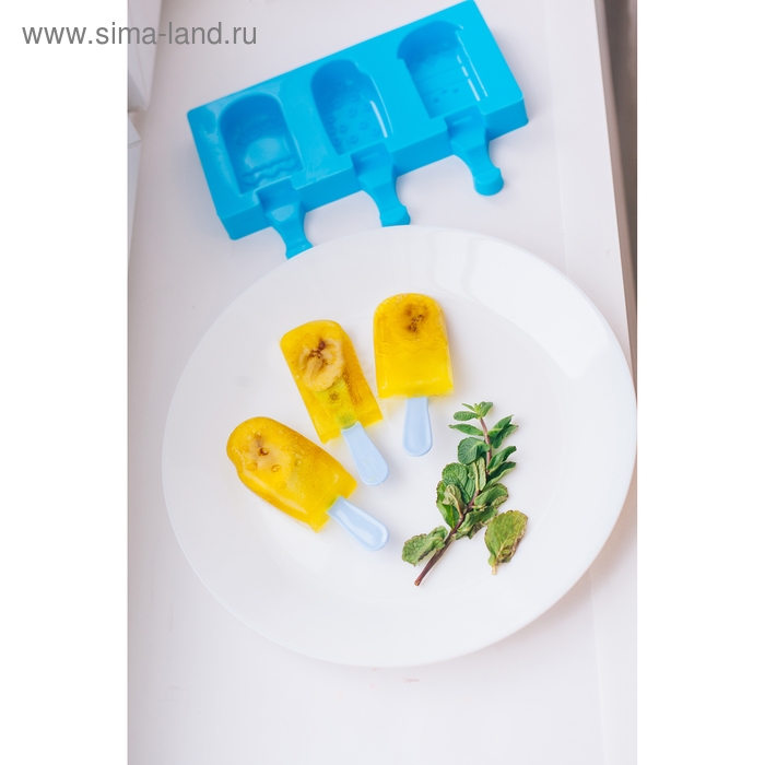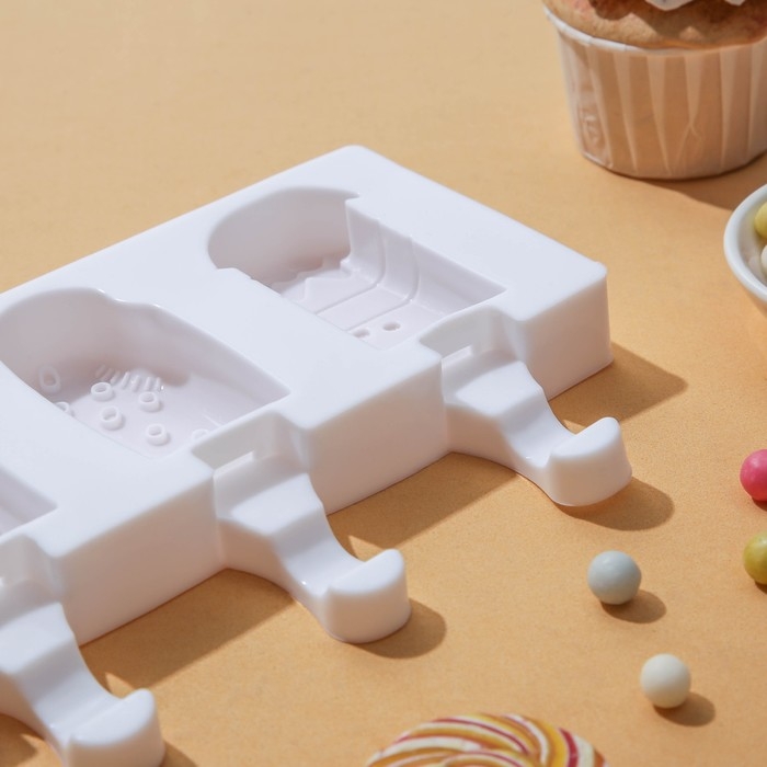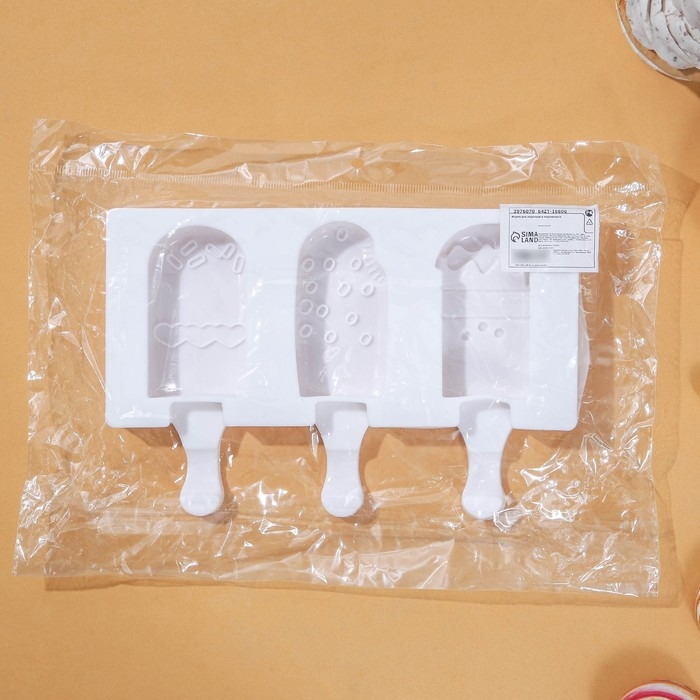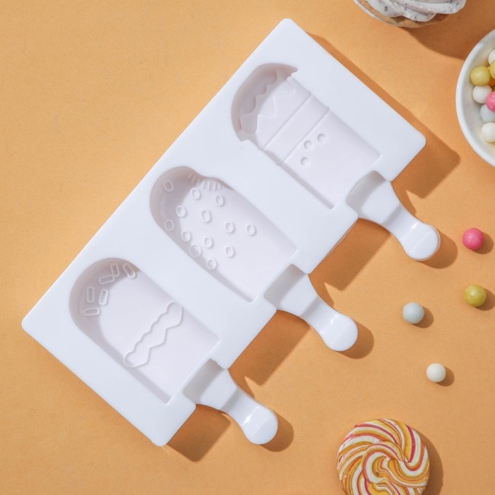 Форма для мороженого «Эскимо со сладостями», силикон, 19,5×17,7 см, 3 ячейки (7×4,2 см), цвет МИКС