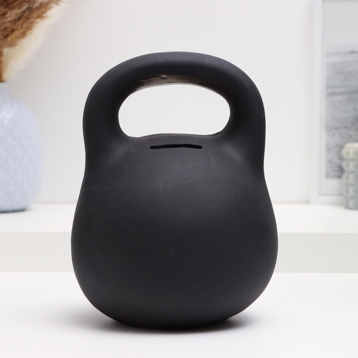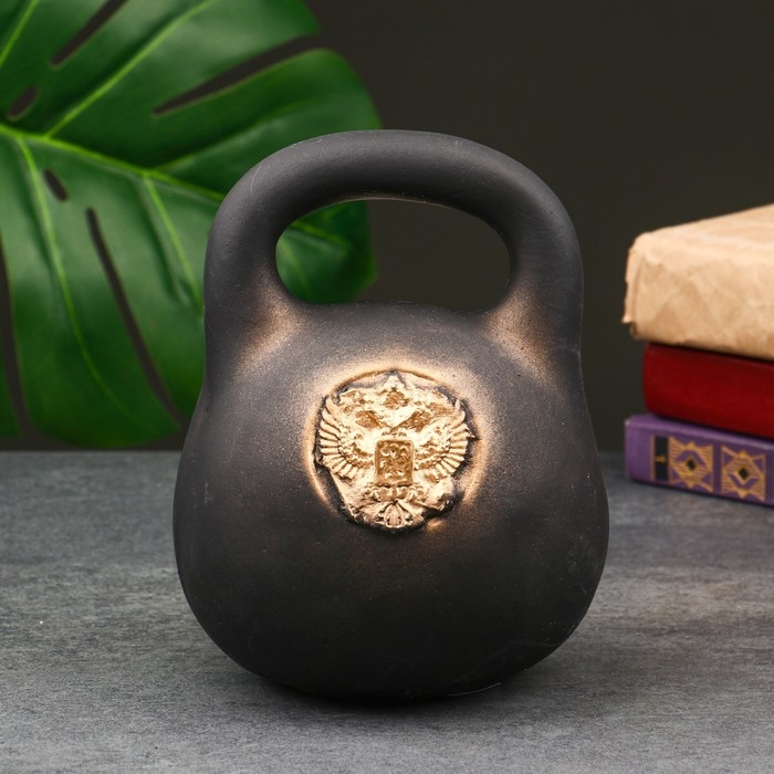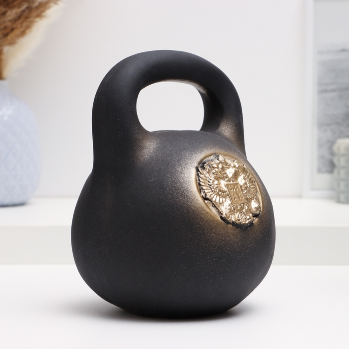 Копилка "Гиря с гербом" черная, 15х15х18см