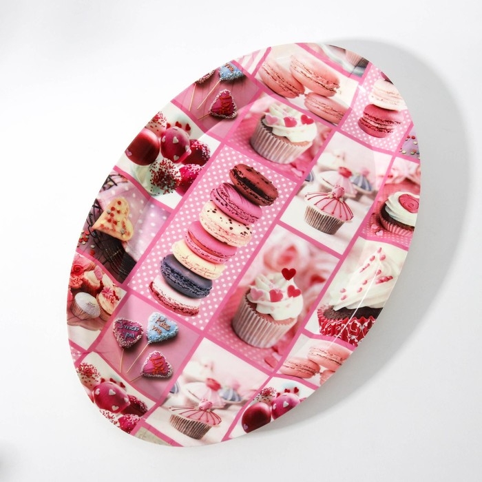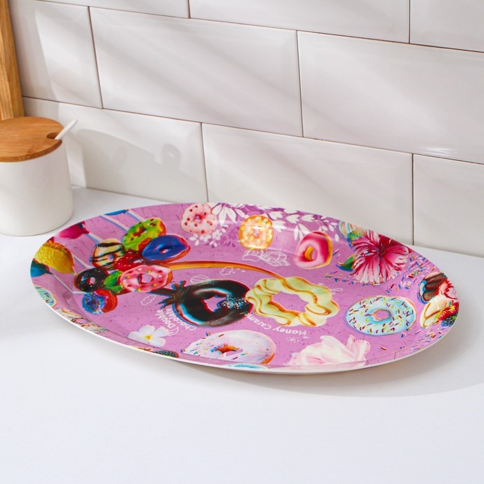 Поднос овальный Доляна «Макаруны», 37×24×3 см, цвет МИКС