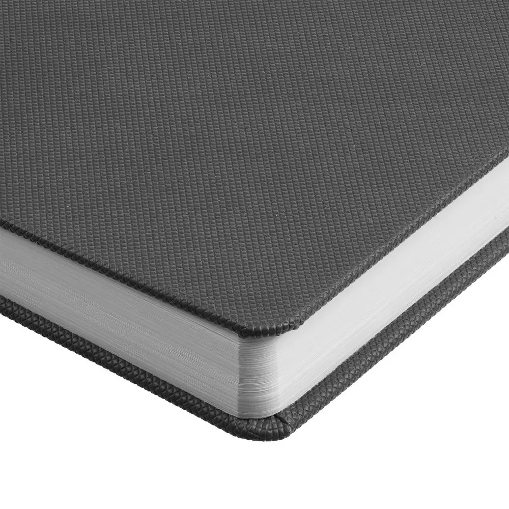 Зауженный ежедневник в твердой обложке из фактурного материала. Благодаря рельефной и слегка прорезиненной на ощупь поверхности ежедневник не выскользнет из рук и не соскользнет со стола.