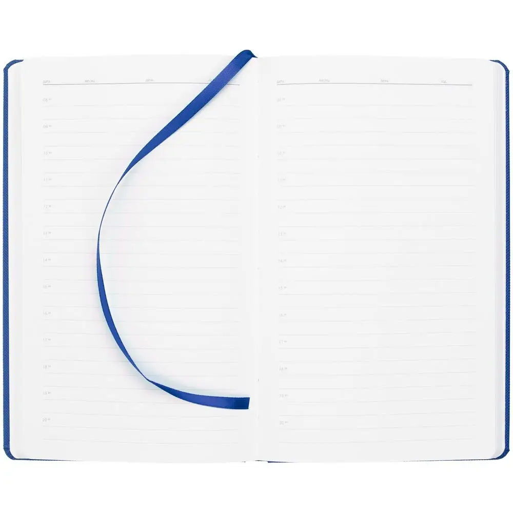 Ежедневник с твердой обложкой, выполнен из материала Canyon, синий НН, дополнен ляссе в цвет обложки.