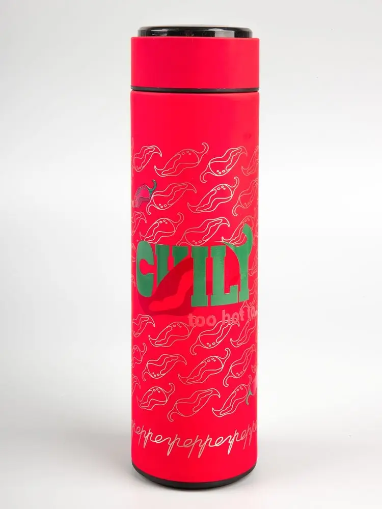 Смарт-бутылка с заменяемой батарейкой Long Therm Soft Touch, красная
