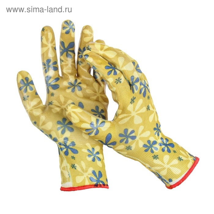 Перчатки нейлоновые, с ПВХ точками, размер 8, МИКС, «Цветы», Greengo