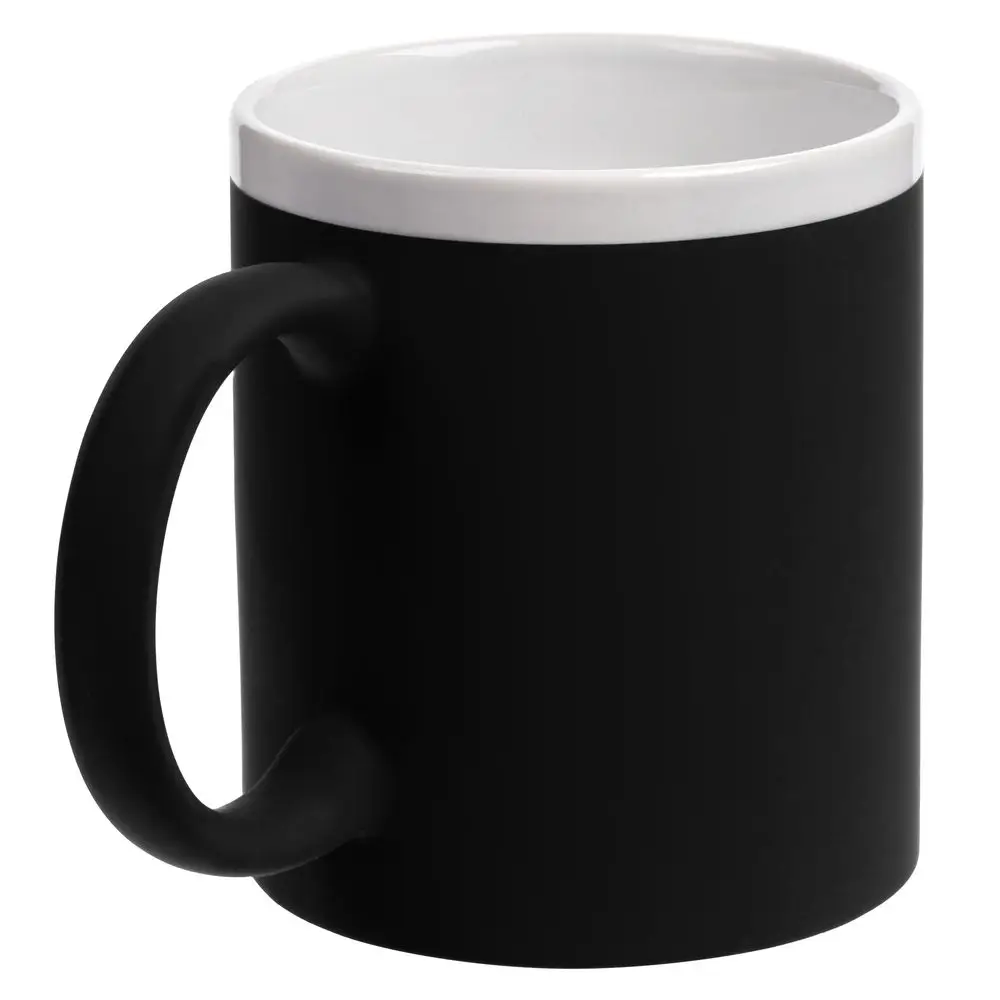 Кружка классической формы StopSpot привлекает внимание своим дизайном и покрытием. Яркая матовая поверхность выигрышно контрастирует с глянцевым белым ободком — так кружка выглядит необычно, а еще меньше пачкается во время эксплуатации.