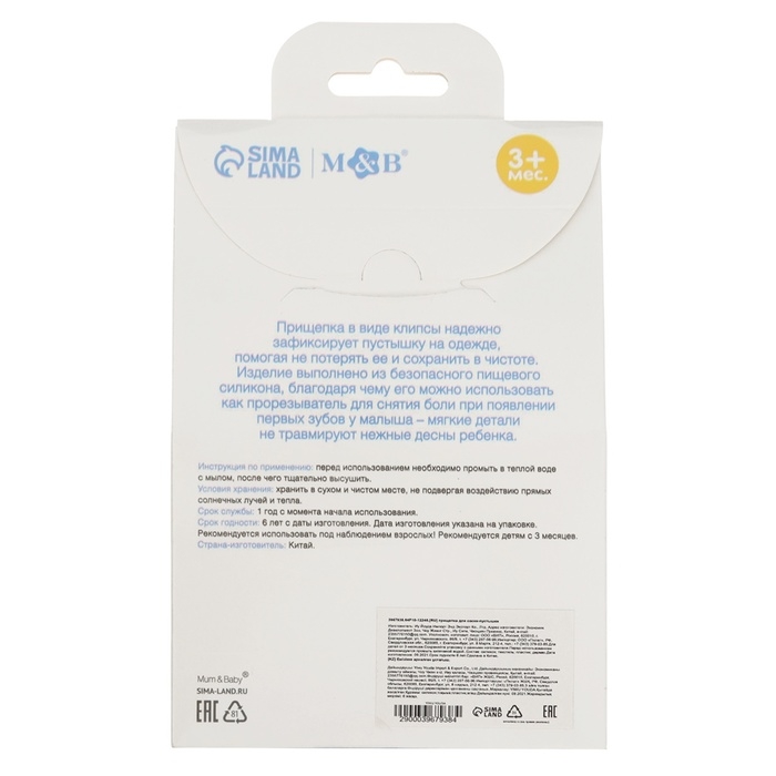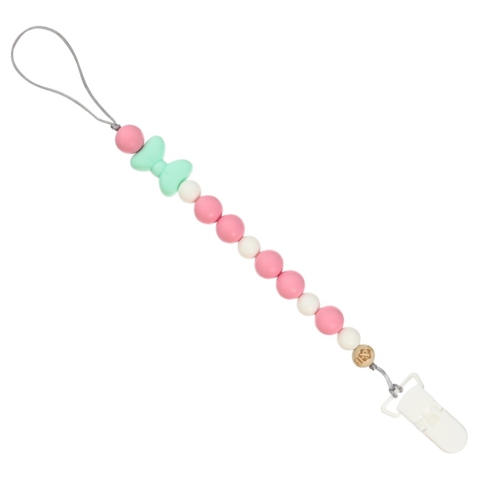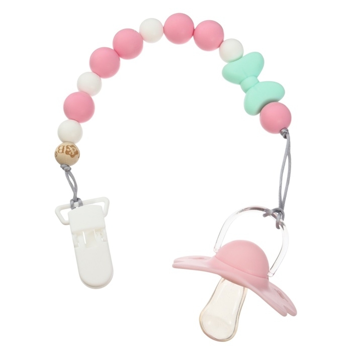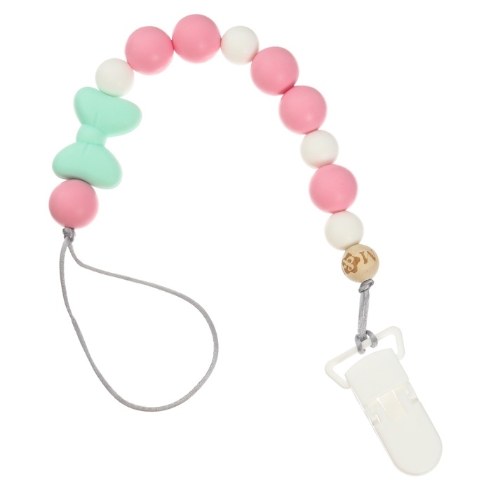 Изделие фиксируется на одежде ребёнка. На конце цепочки есть карабин, который зацепляется за кольцо пустышки. Надёжное крепление убережёт вещь от падения на пол, если малютка случайно выронит её изо рта.