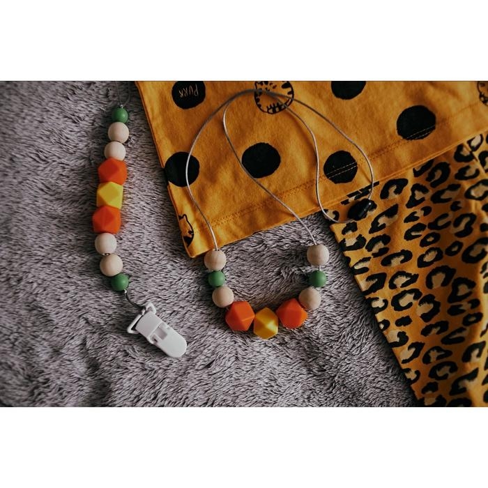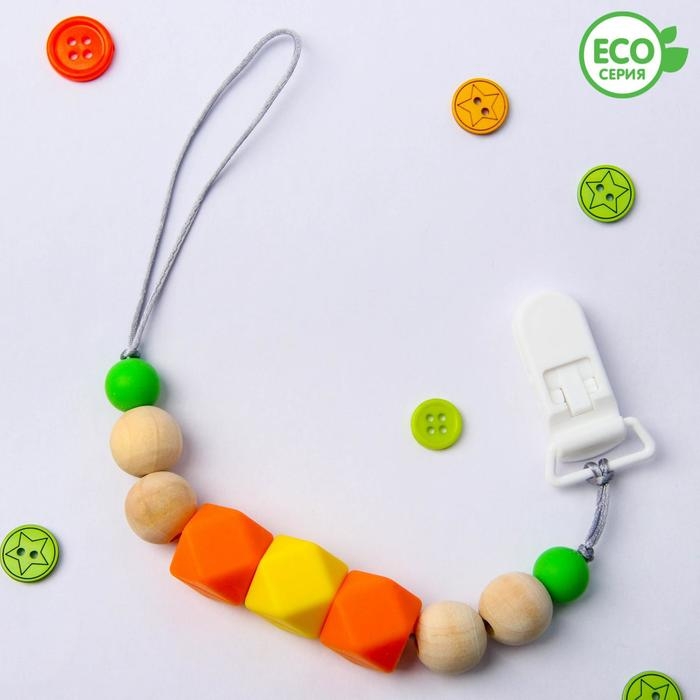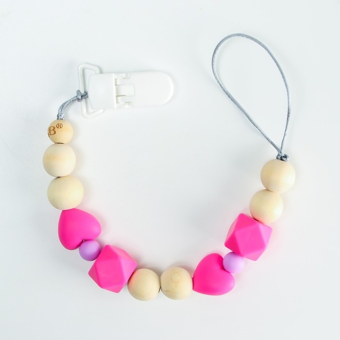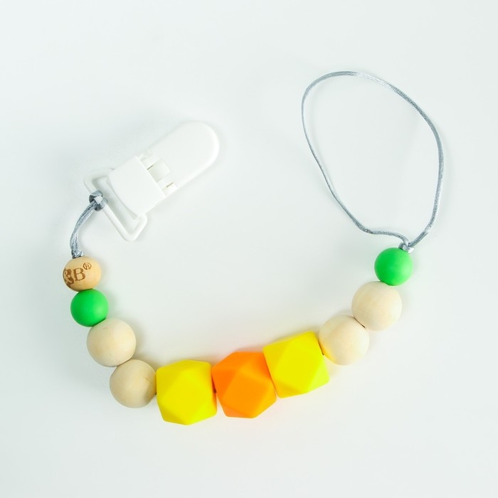 Изделие фиксируется на одежде ребёнка. На конце цепочки есть карабин, который зацепляется за кольцо пустышки. Надёжное крепление убережёт вещь от падения на пол, если малютка случайно выронит её изо рта.
