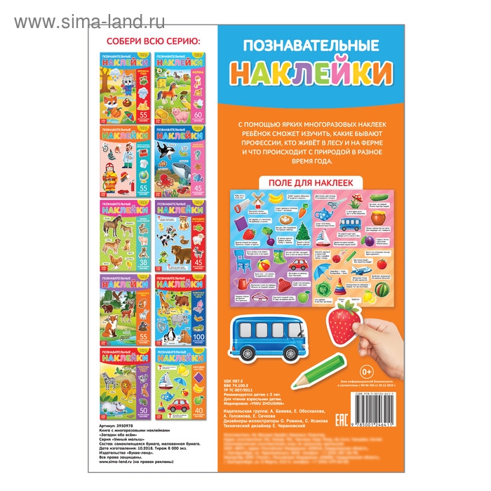 С помощью ярких многоразовых наклеек ребёнок сможет изучить, какие бывают профессии, кто живёт в лесу и на ферме и что происходит с природой в разное время года.