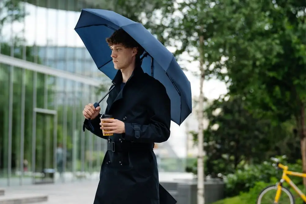 Элегантное решение классического зонта — с надежной ребристой ручкой и насыщенными оттенками купола.