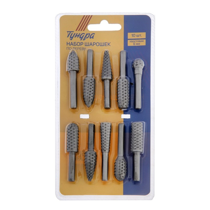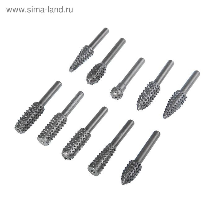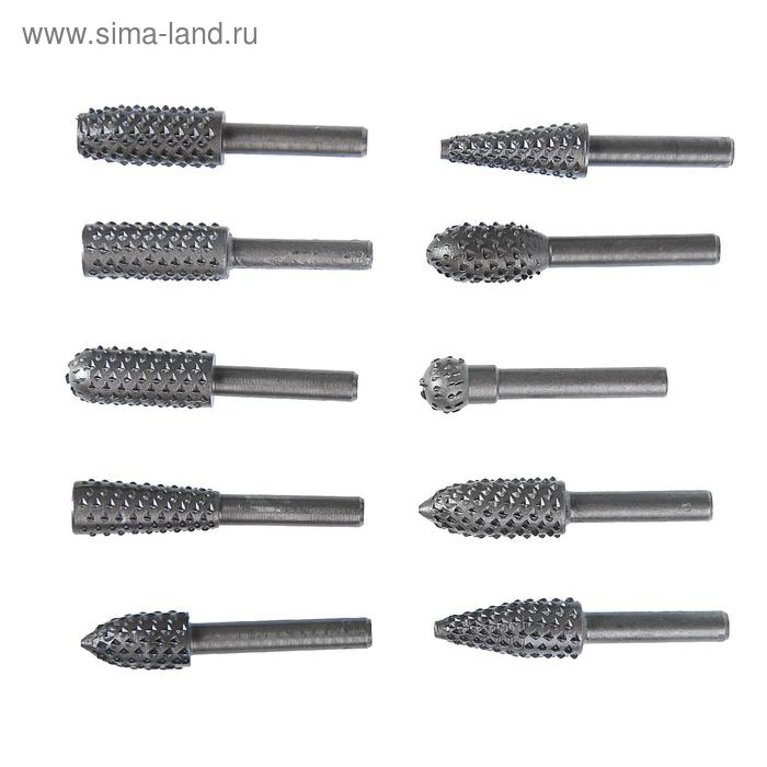 Набор шарошек по дереву ТУНДРА, диаметр хвостовика 6 мм, 10 шт.