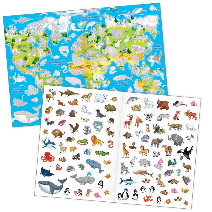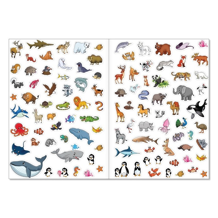 Многоразовые наклейки набор «Такие разные животные», А4, 2 шт.