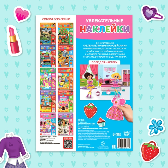 Книга с многоразовыми наклейками «Одень куколку» даст девочке возможность почувствовать себя настоящим модельером! Наряжая и переодевая персонажей, юный стилист будет представлять, будто книга — это выпуск её собственного модного журнала. Творческое занятие позволить проявить фантазию и самостоятельно экспериментировать с образами.