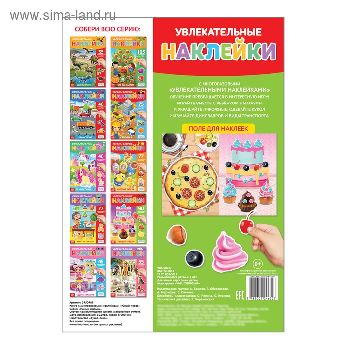 С многоразовыми увлекательными наклейками обучение превращается в интересную игру! Играйте вместе с ребёнком в магазин и украшайте пирожные, одевайте кукол и изучайте динозавров и виды транспорта.