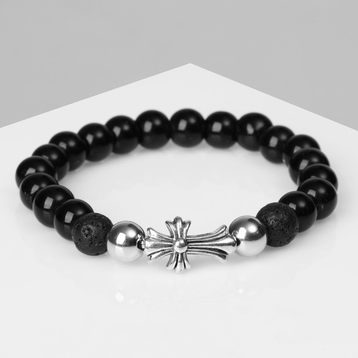 Браслет унисекс «Аккорд» крест, цвет чёрный с чернёным серебром, d=6 см