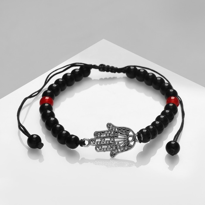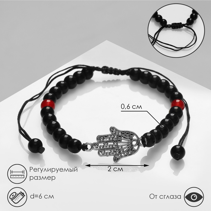 Браслет-оберег «Рука счастья Хамса» гранд, цвет красно-чёрный с серебром, d=6 см