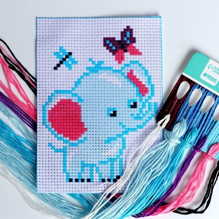 Вышивка крестиком для детей «Слоник и бабочка», набор для творчества, 14 х 10 см