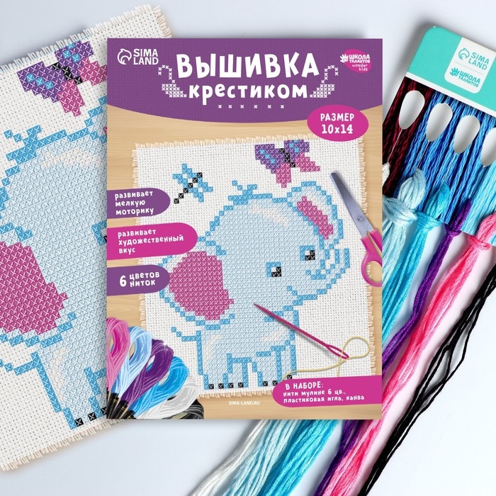 Вышивка с красивым рисунком и цветной схемой — то, что нужно малышу, чтобы освоить новое хобби!