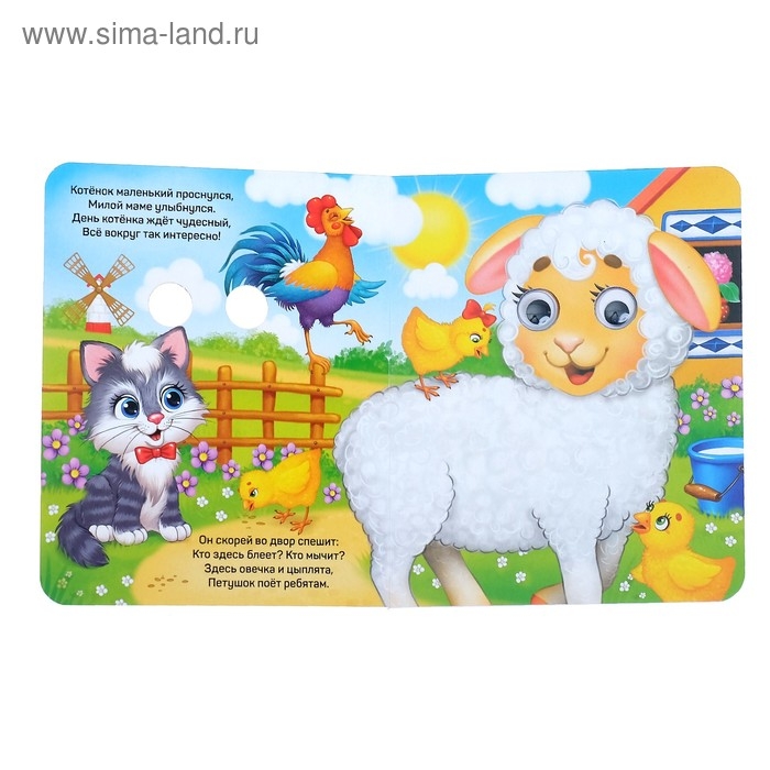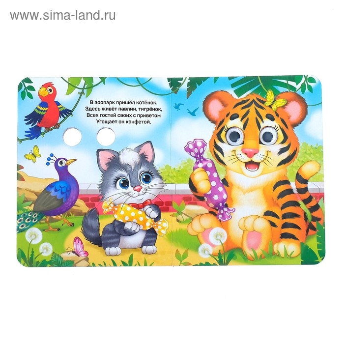 Книга сделана из плотного картона, поэтому прослужит долго. Каждый разворот имеет своего персонажа с забавными глазками, которые привлекут внимание малыша. Также внутри вы найдёте рассказы в стихотворной форме.
