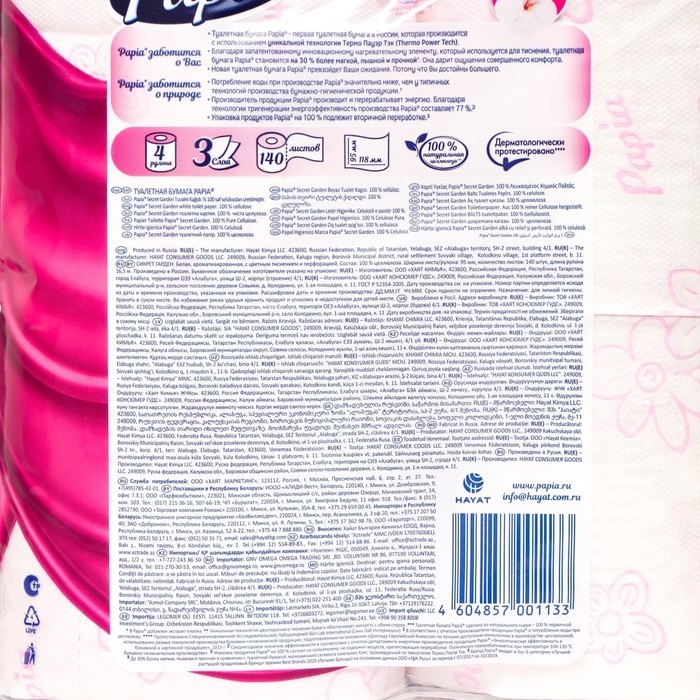 - Дизайн "Таинственный сад": Упаковка туалетной бумаги Papia "Таинственный сад" имеет стильный и привлекательный дизайн, который добавляет нотку элегантности в вашу ванную комнату.