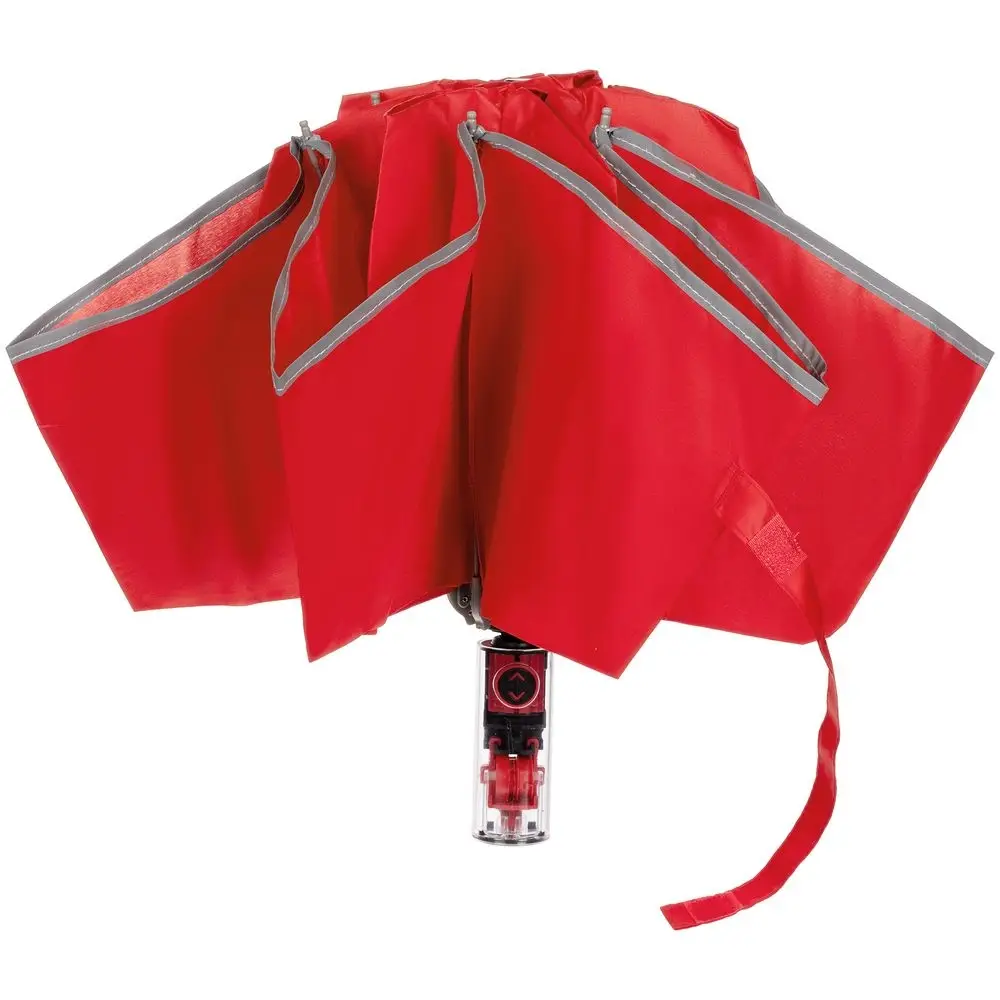 Складной зонт Futurum привлекает внимание оригинальным дизайном. Складываясь после дождя, он прячет мокрую поверхность в себя, а сухая остается снаружи.Светоотражающий кант и ручка из прозрачного пластика, не скрывающая ярких деталей внутри, добавляют внешнему виду зонта футуристичности.