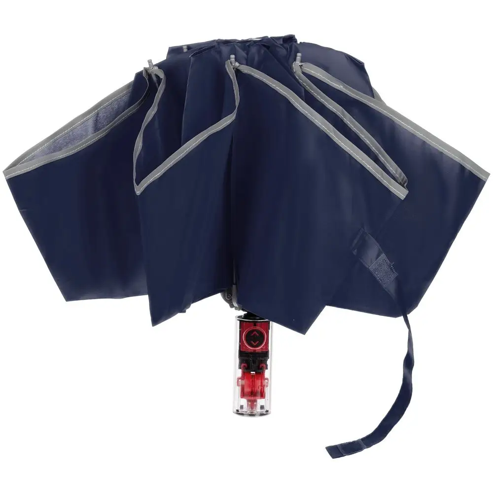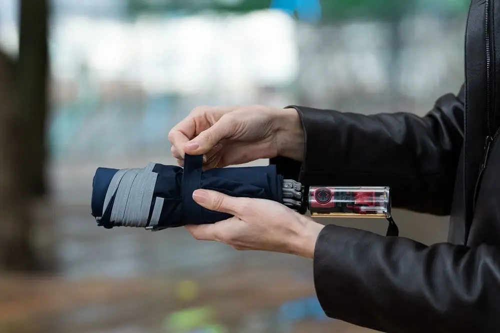 Складной зонт Futurum привлекает внимание оригинальным дизайном. Складываясь после дождя, он прячет мокрую поверхность в себя, а сухая остается снаружи.Светоотражающий кант и ручка из прозрачного пластика, не скрывающая ярких деталей внутри, добавляют внешнему виду зонта футуристичности.