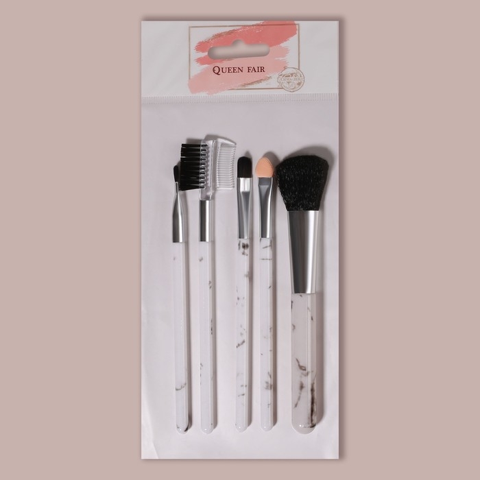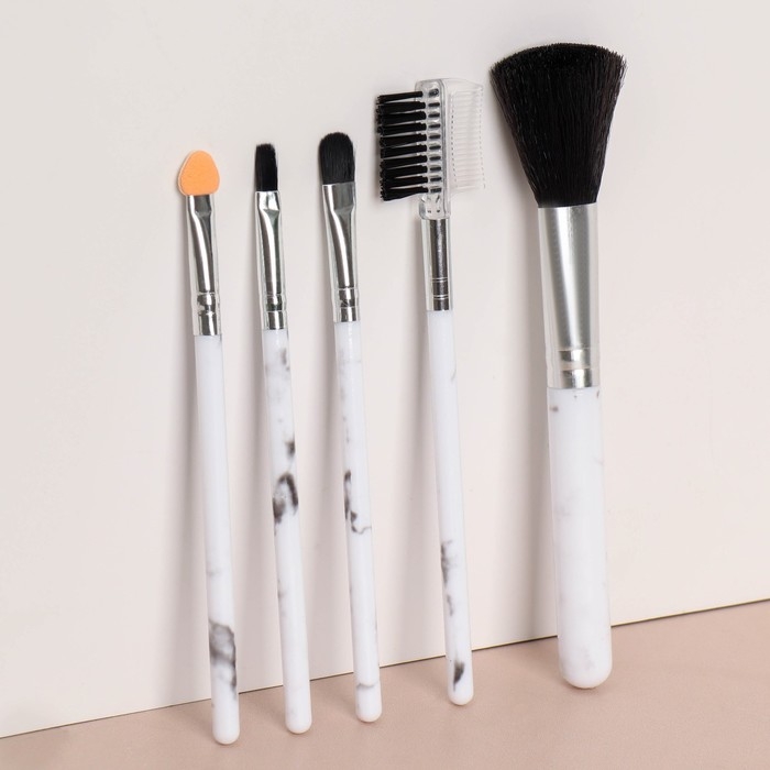 Набор кистей для макияжа «Мрамор», 5 предметов, цвет белый/чёрный