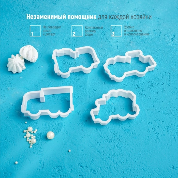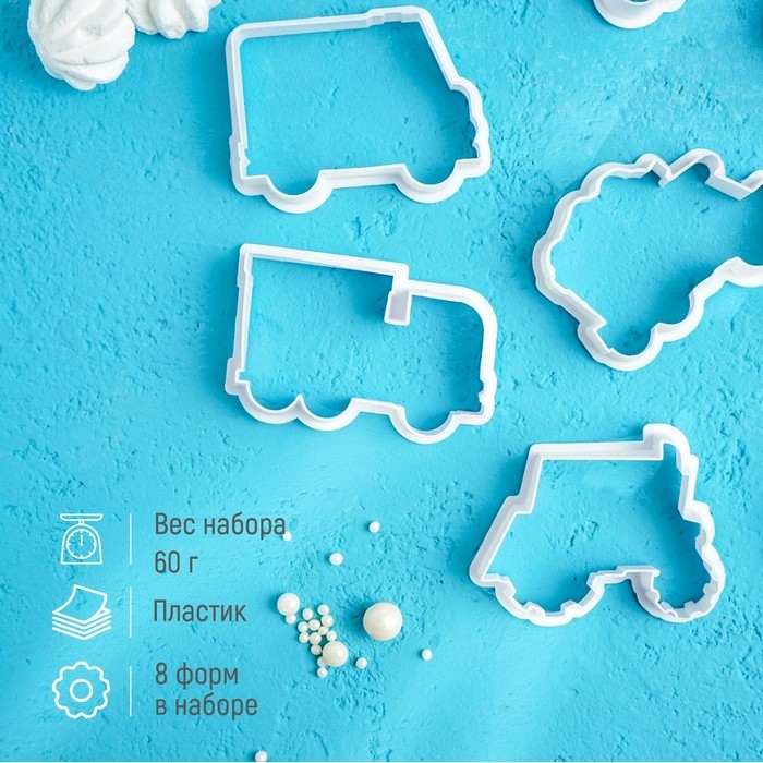 Набор форм для печенья Доляна «Грузовой транспорт», 8 предметов, цвет белый
