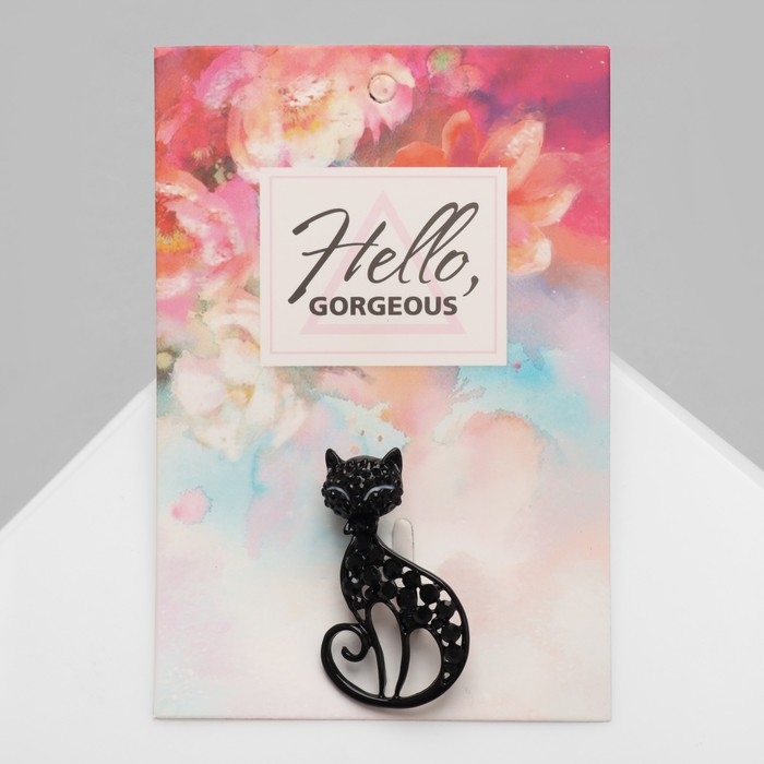 Брошь «Кошка» грациозная, цвет чёрный