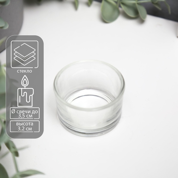 Подсвечник стекло на 1 свечу "Круглый" прозрачный 3,2х5х5 см