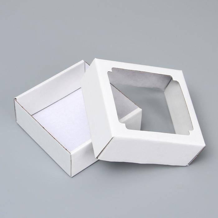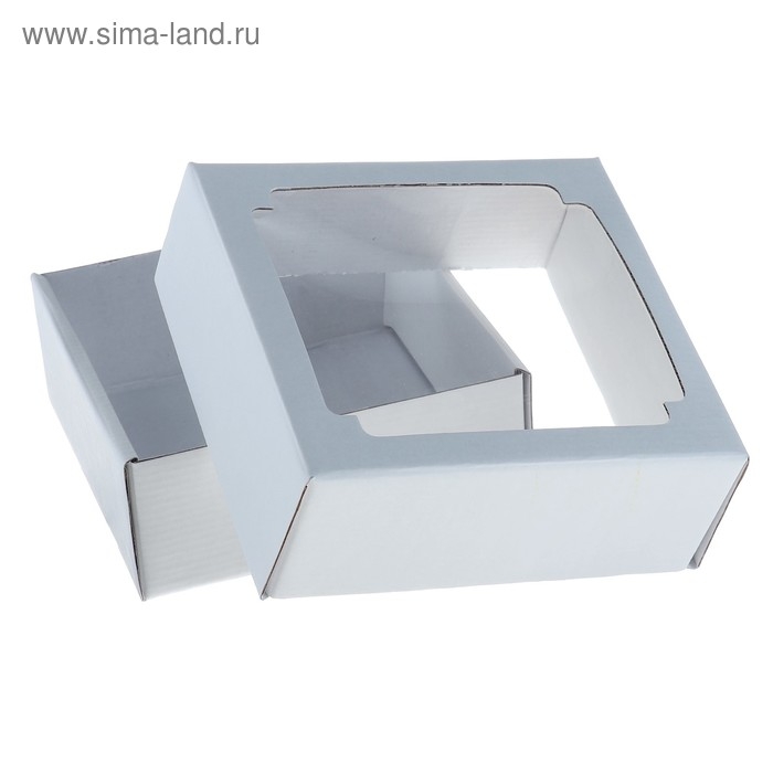 Коробка сборная без печати крышка-дно белая с окном 14,5 х 14,5 х 6 см