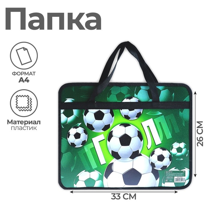 Папка с ручками А4, 330 х 260 х 75 мм, пластиковая, ручки-тесьма, Calligrata "Гол"