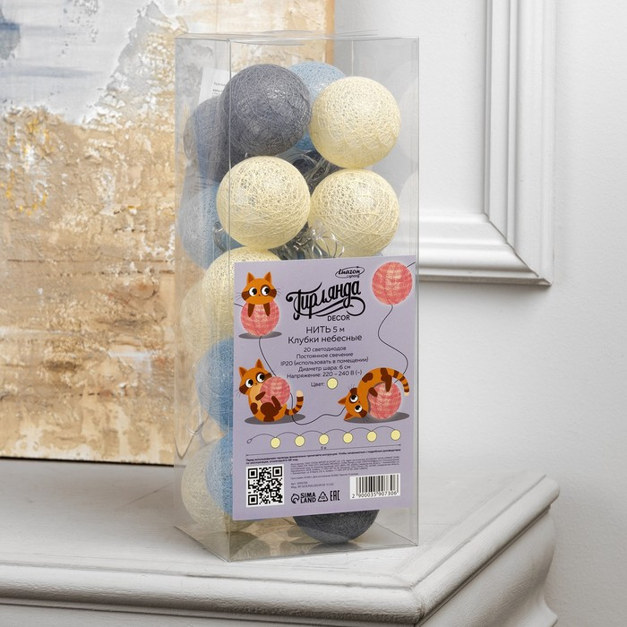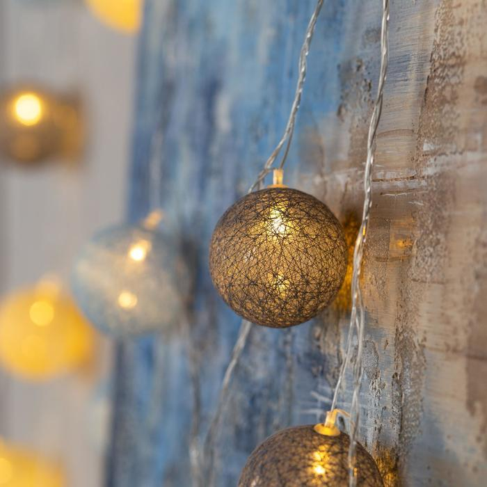 Гирлянда «Нить» 5 м с насадками «Клубки небесные», IP20, прозрачная нить, 20 LED, свечение тёплое белое, 220 В