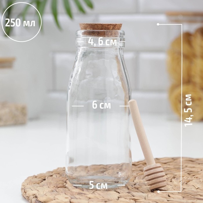 Ёмкость стеклянная для мёда и варенья с деревянной ложкой Доляна «Парфе», 250 мл, 7×14 см