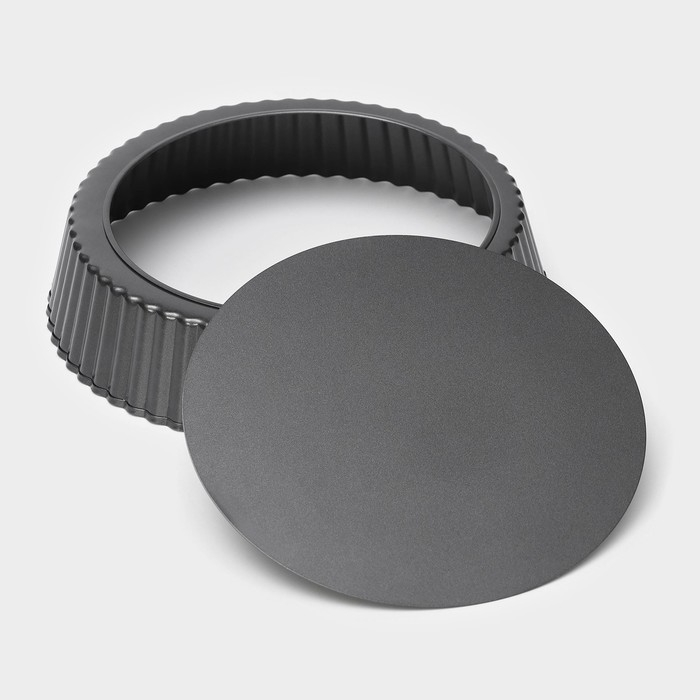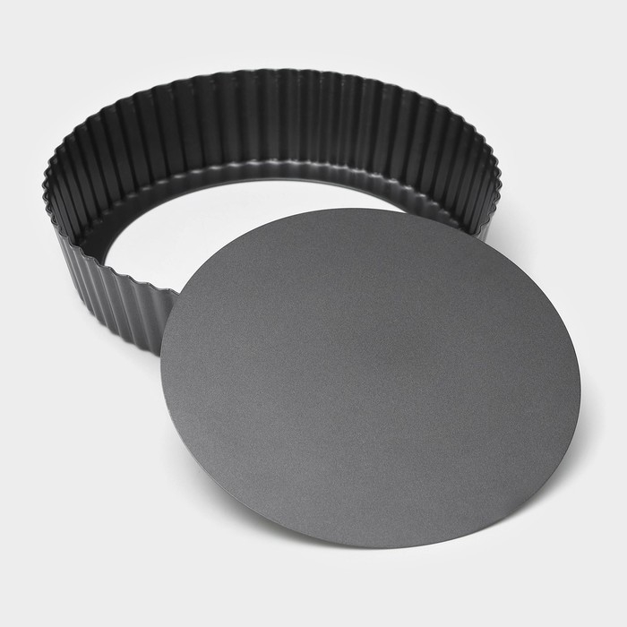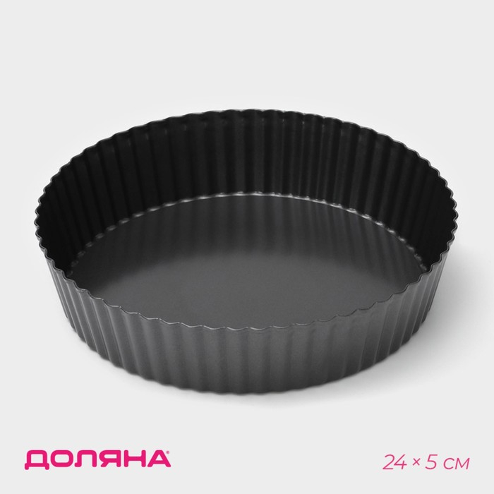 Форма для выпечки Доляна «Жаклин. Рифлёный круг», 24×5 см, съёмное дно, антипригарное покрытие, цвет чёрный