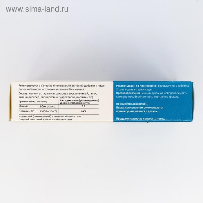 Состав: магния аспарагинат, пиридоксина гидрохлорид, глюкоза, тальк молотый, титана диоксид.