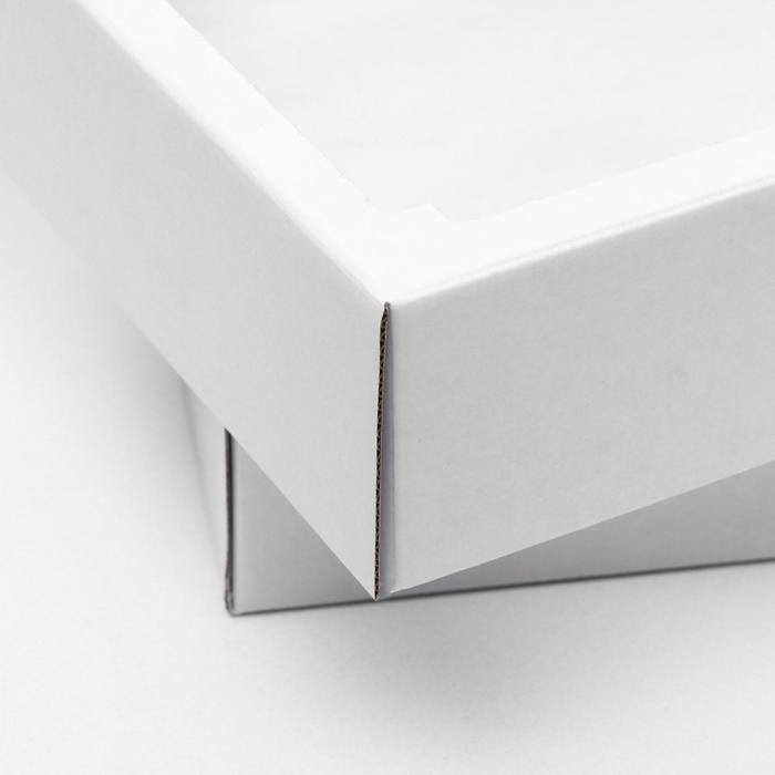 Коробка сборная без печати крышка-дно белая с окном 37 х 32 х 7 см