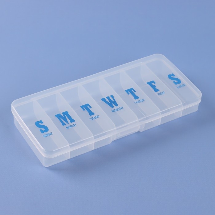 Таблетница «Неделька», английские буквы, 7 секций, цвет прозрачный