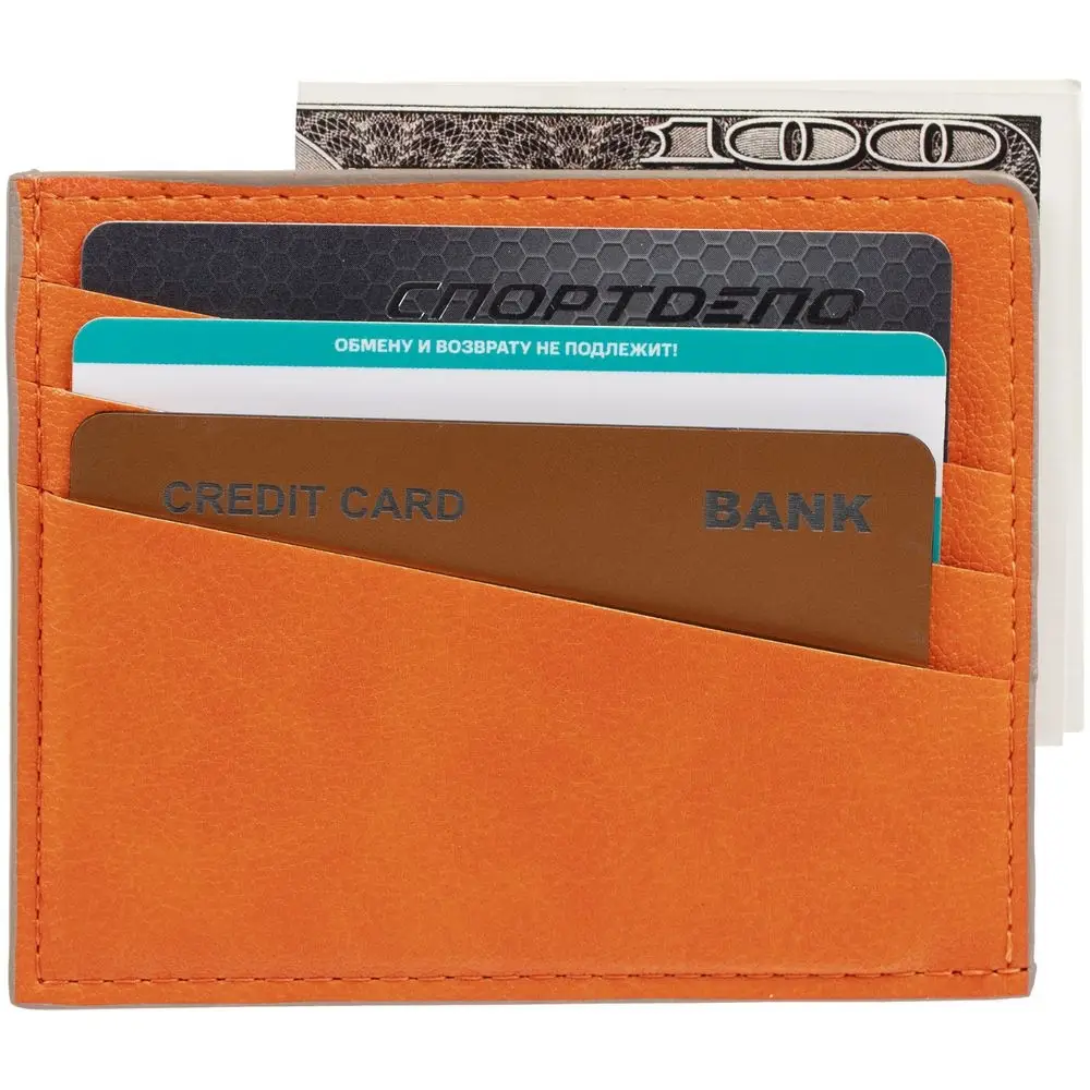 Имеет 4 отделения для кредитных карт и 1 отделение для купюр.