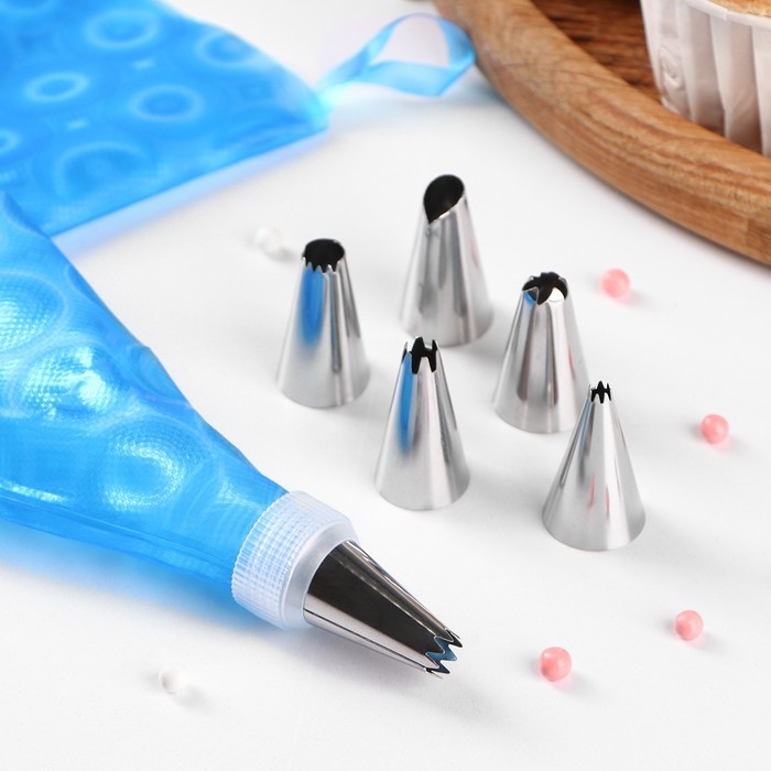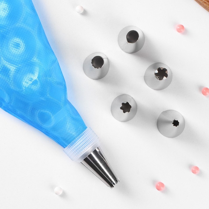 Набор кондитерский Доляна «Хоста», 8 предметов: 6 насадок, адаптер, мешок кондитерский 31×17 см