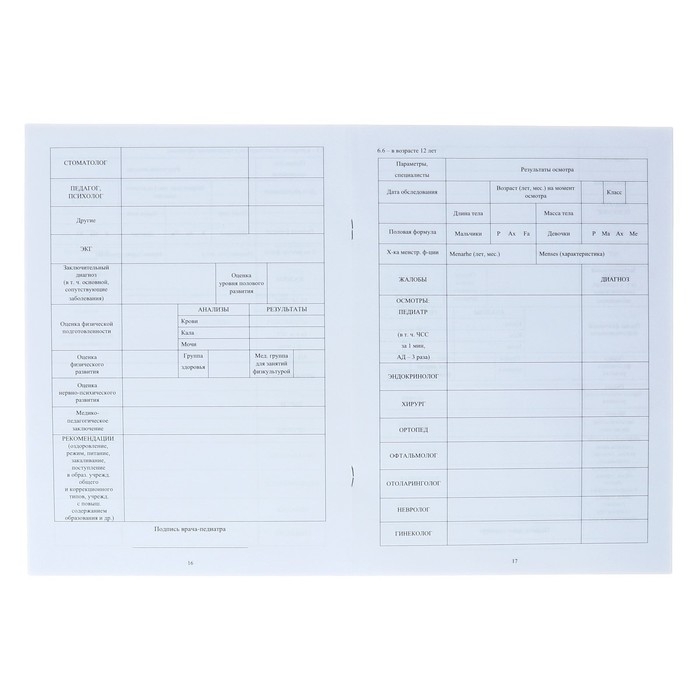 Медицинская карта ребёнка А4, 16 листов, обложка - офсет 160 г/м², блок офсет 65 г/м². Форма № 026/у-2000
